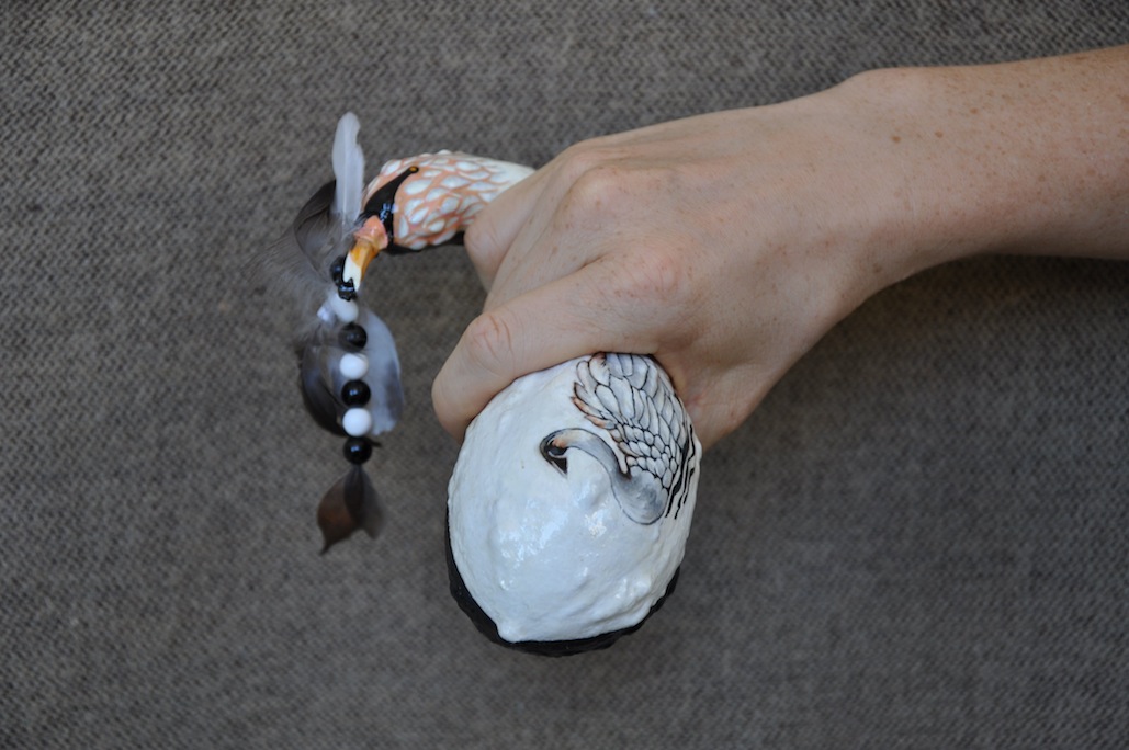 ART: Swan gourd rattle is painted equally black and white. This represents (1) the dark and light side of the Universe and (2) the Yin Yang of our Being. Used in healing, swan energy helps to release the primal life-changing power of beauty through transformation.